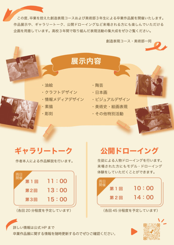 令和7年度 創造表現コース・美術部3年生による卒業作品展を開催します!