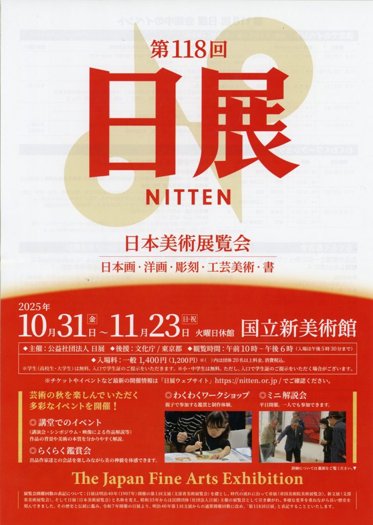 第118回日展(日本画・洋画・彫刻・工芸美術・書)2025年10月31日(金)~11月23日(日)