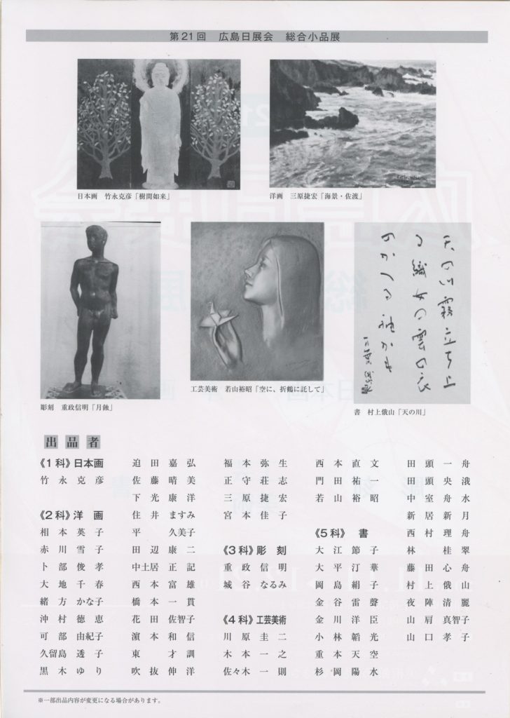 二科(洋画)高山 博子(基町高校28回生)橋本 一貫(基町高校29回生)福本 弥生(基町高校53回生(創造表現コース1期生))